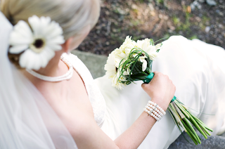 For my wedding day I made a pair of earrings, a necklace and a bracelet using freshwater pearls. The bracelet is elasticated and the necklace is held in place with a magnetic silver diamante clasp. The photos seen here were taken by Malin Widstrand, my wedding photographer. You can find her at www.malinwidstrand.com